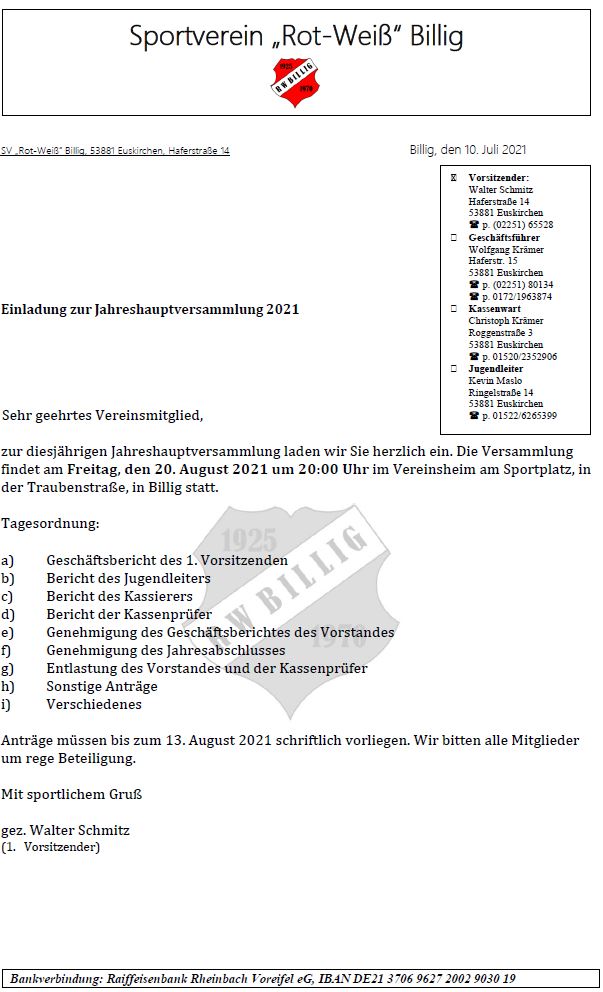 Unsere erste Mannschaft startet am 05.09.2021 um 15:00 Uhr mit einem Auswärtsspiel gegen den TB-SV Füssenich-Geich.